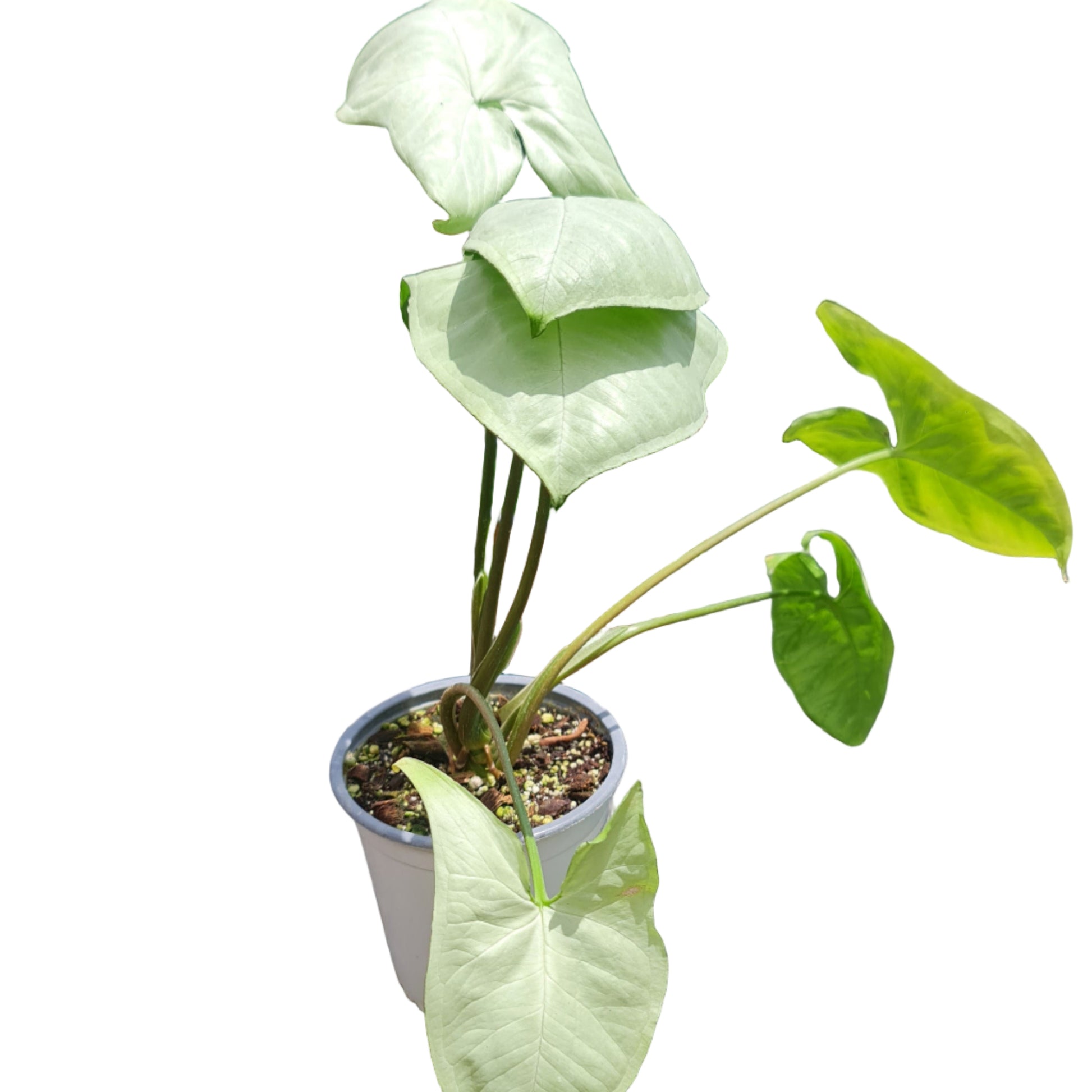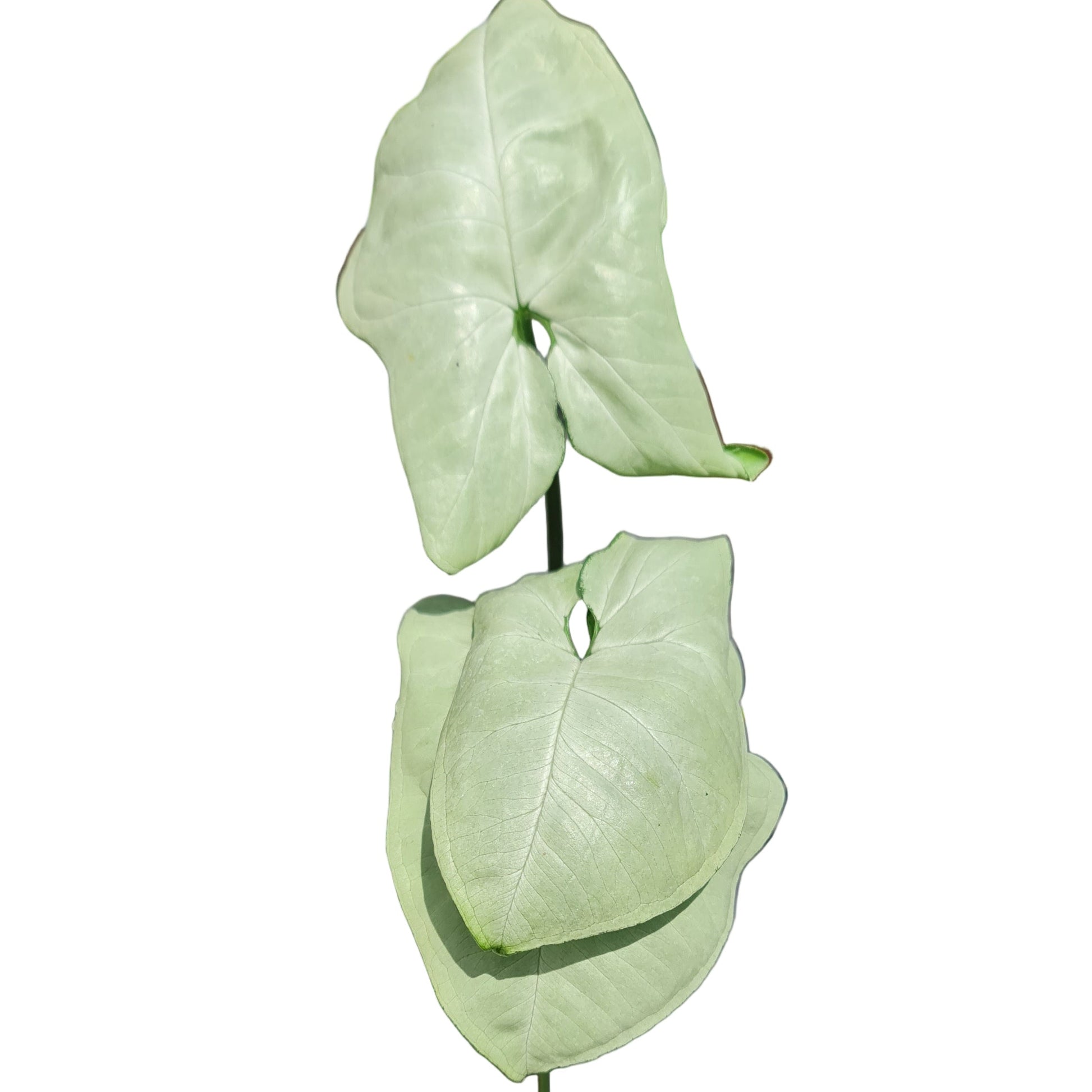 Forma de la Hoja: A diferencia de otros singonios que desarrollan la típica forma de flecha, las hojas del 'Holly' son a menudo ovales o ligeramente en forma de corazón cuando son jóvenes. Aunque con la edad pueden volverse levemente lobuladas, son menos segmentadas que los cantantes maduros.